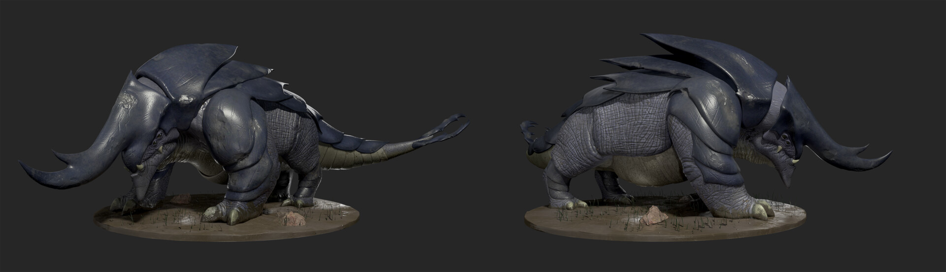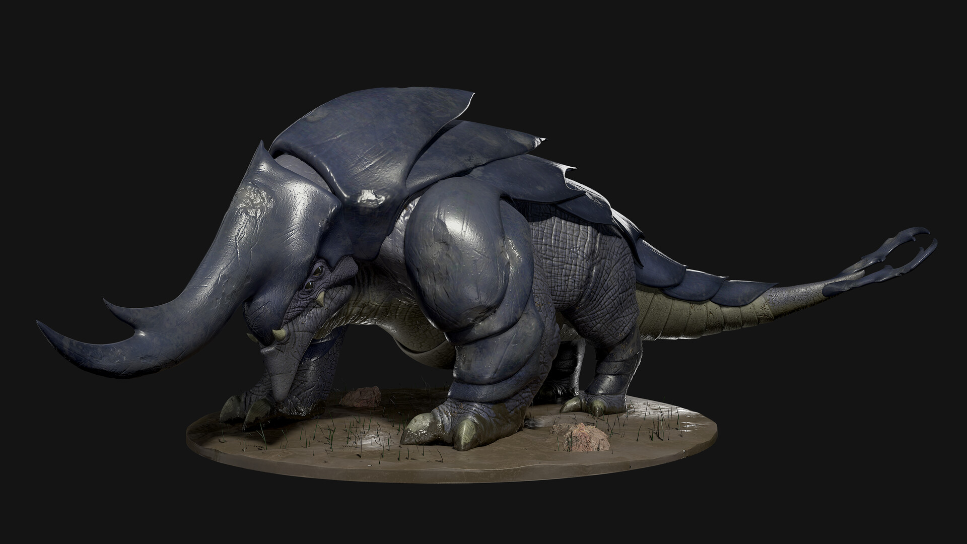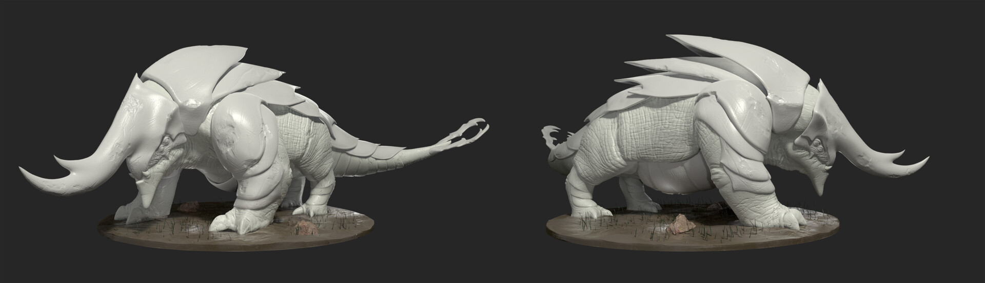 Created in ZBrush for the creature sculpting course at Gnomon. The purpose of this project was to fuse 3 animals from the modern day and make it look prehistoric.