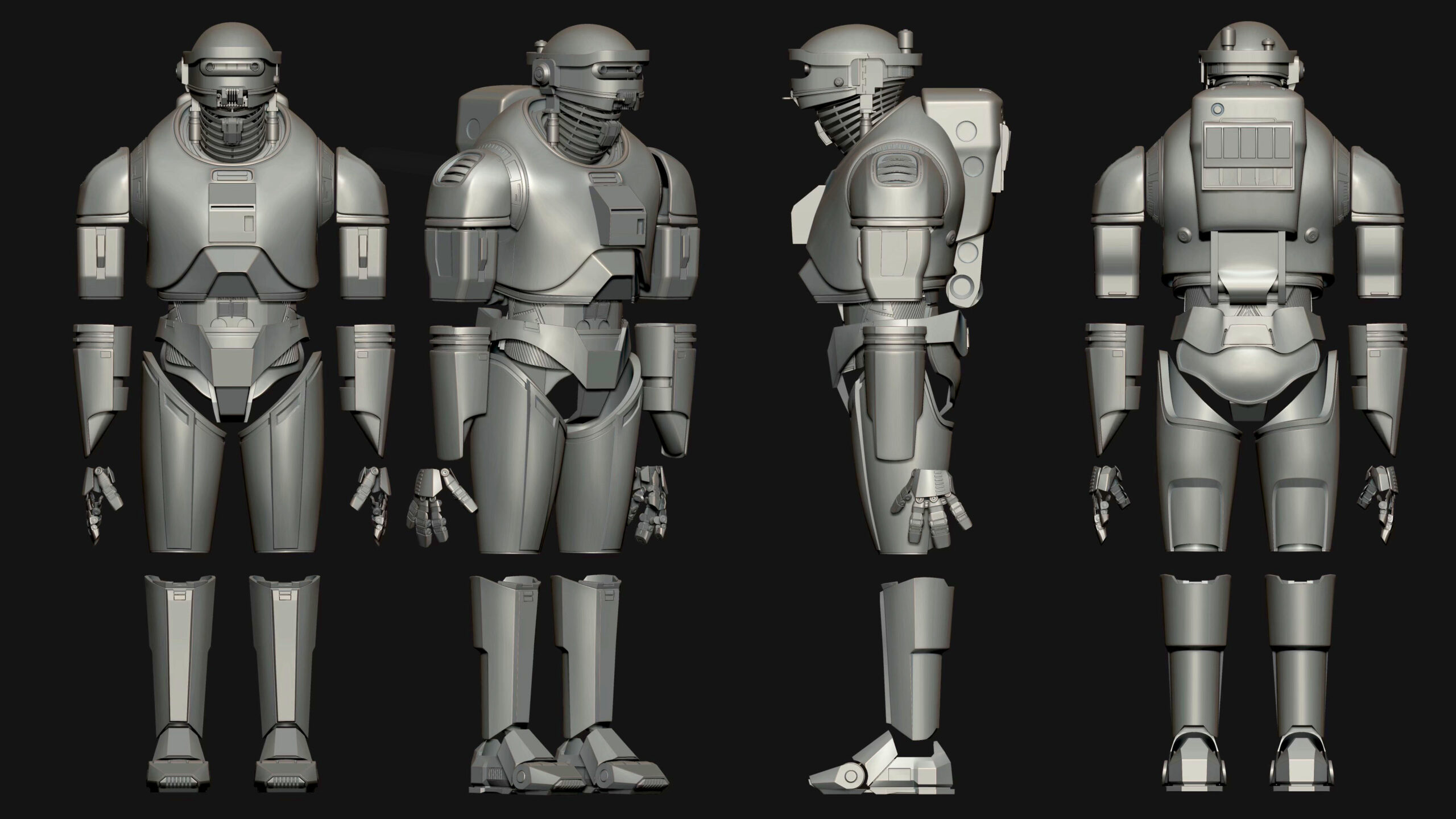 These were the first two droids I got to work on during my time at Legacy Effects. I was responsible for creating high-resolution meshes that would be printed and body shopped. Creating the NED-B suit was a good challenge in particular, since the actor and original concept had conflicting body proportions. Remaining nondestructive and working with a low SubD/Boolean workflow allowed me to manipulate shapes quickly, based on notes from the client.